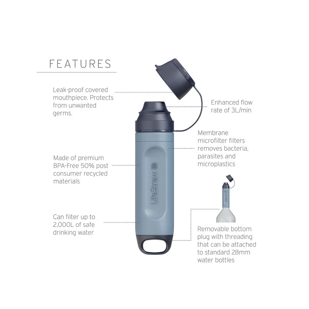 El filtro de agua Solo Water Filter Peak Series es un dispositivo ultraligero (solo 48 gramos), compacto (apenas 13 cm) y portátil que elimina bacterias, parásitos, microplásticos, sedimentos, arena y turbidez del agua potable. Su rosca estándar de 28 mm permite acoplarlo a la mayoría de las botellas de agua comunes. La tapa abatible, que se abre con una sola mano, facilita y agiliza la filtración sobre la marcha: llena una botella de 1 litro en solo 20 segundos. Ideal para senderismo, excursionismo, acampada, situaciones de emergencia, viajes o cualquier necesidad fuera de casa. Con menos de 57 gramos y capacidad para 2000 litros de agua potable limpia, no debería faltar en ninguna mochila, bolsillo, bolsa de emergencia ni guantera.